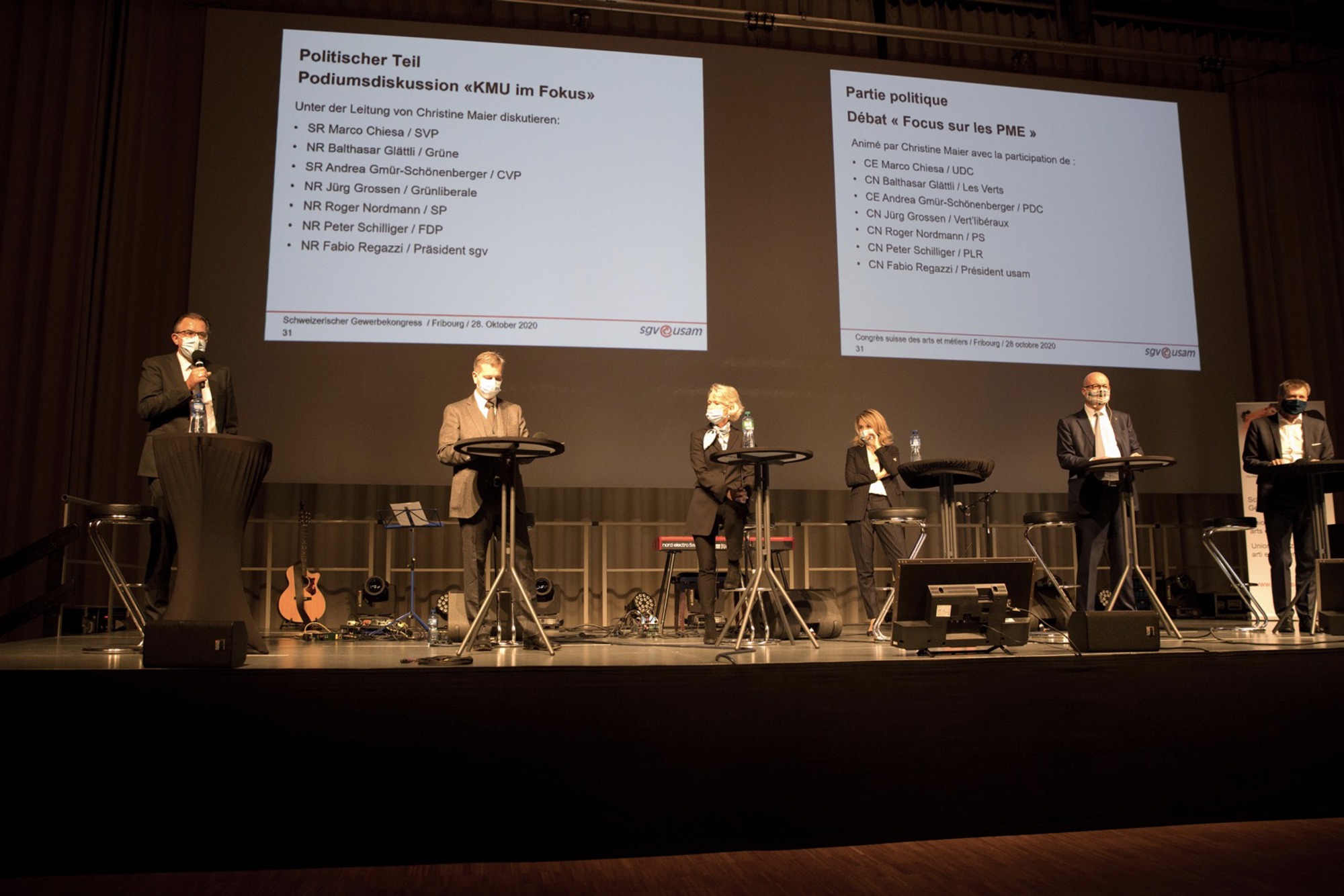 Am 28. Oktober fand der Schweizerische Gewerbekongress im Forum Fribourg zum Thema KMU im Fokus statt. Höhepunkt war die Wahl von CVP-Nationalrat Fabio Regazzi zum neuen sgv-Präsidenten. Zudem verabschiedeten die Delegierten des sgv am Kongress eine richtungsweisende Digitalisierungscharta.