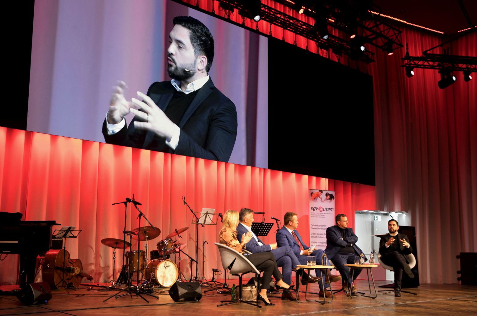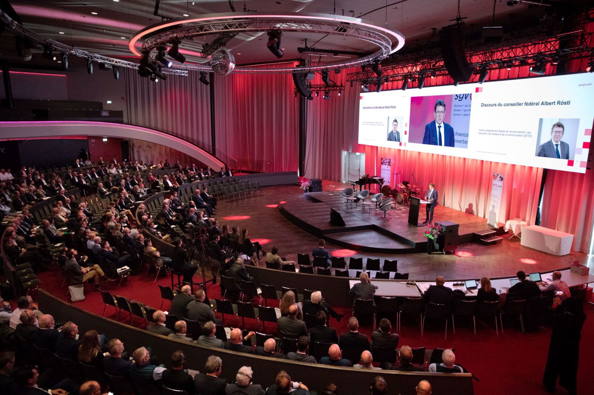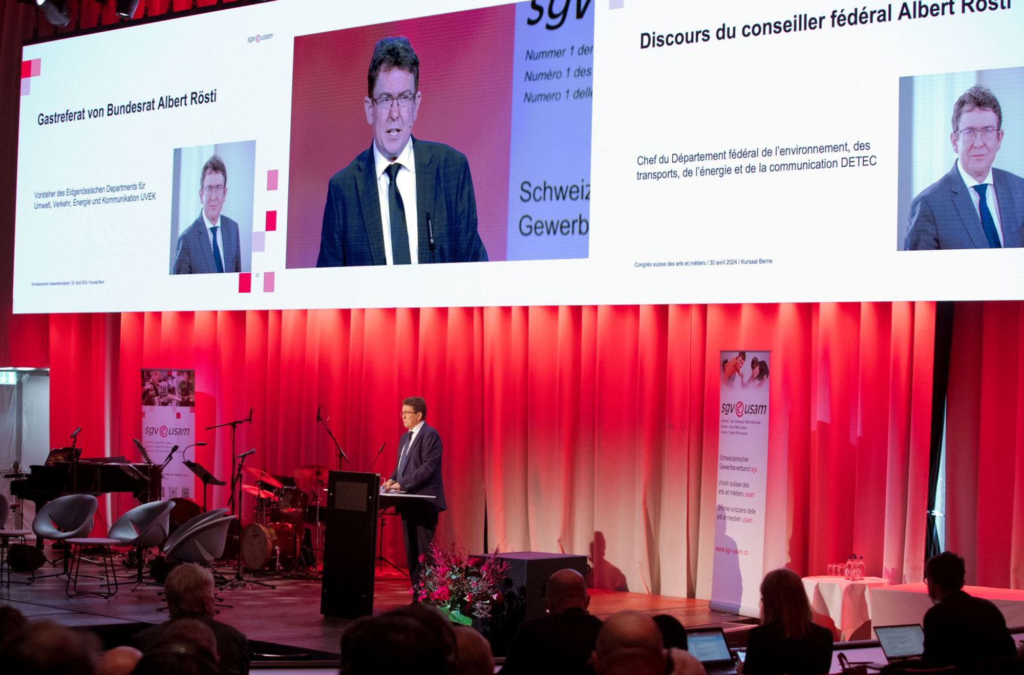 Der Schweizerische Gewerbeverband sgv hat im Rahmen des alle zwei Jahre stattfindenden Gewerbekongresses seine Gremien neu gewählt. Der wiedergewählte Präsident, «Die Mitte»-Ständerat Fabio Regazzi betonte in seiner Rede, dass der sgv trotz erzielten Erfolgen weiterhin hartnäckig in seinem Kerngeschäft bleibe: Dem Kampf gegen unnötige Regulierungskosten. Mit der Wahl des neuen Direktors im letzten Jahr seien die Weichen für eine erfolgreiche Zukunft gestellt. Der Kongress fand unter dem Motto «KMU mobil» statt. Regazzi sprach in seiner Rede dementsprechend auch die Wichtigkeit der kommenden Abstimmung zum Nationalstrassenausbau STEP an. Auch die Keynote des Ehrengastes Bundesrat Albert Rösti drehte sich unter anderem um das Thema Mobilität.
