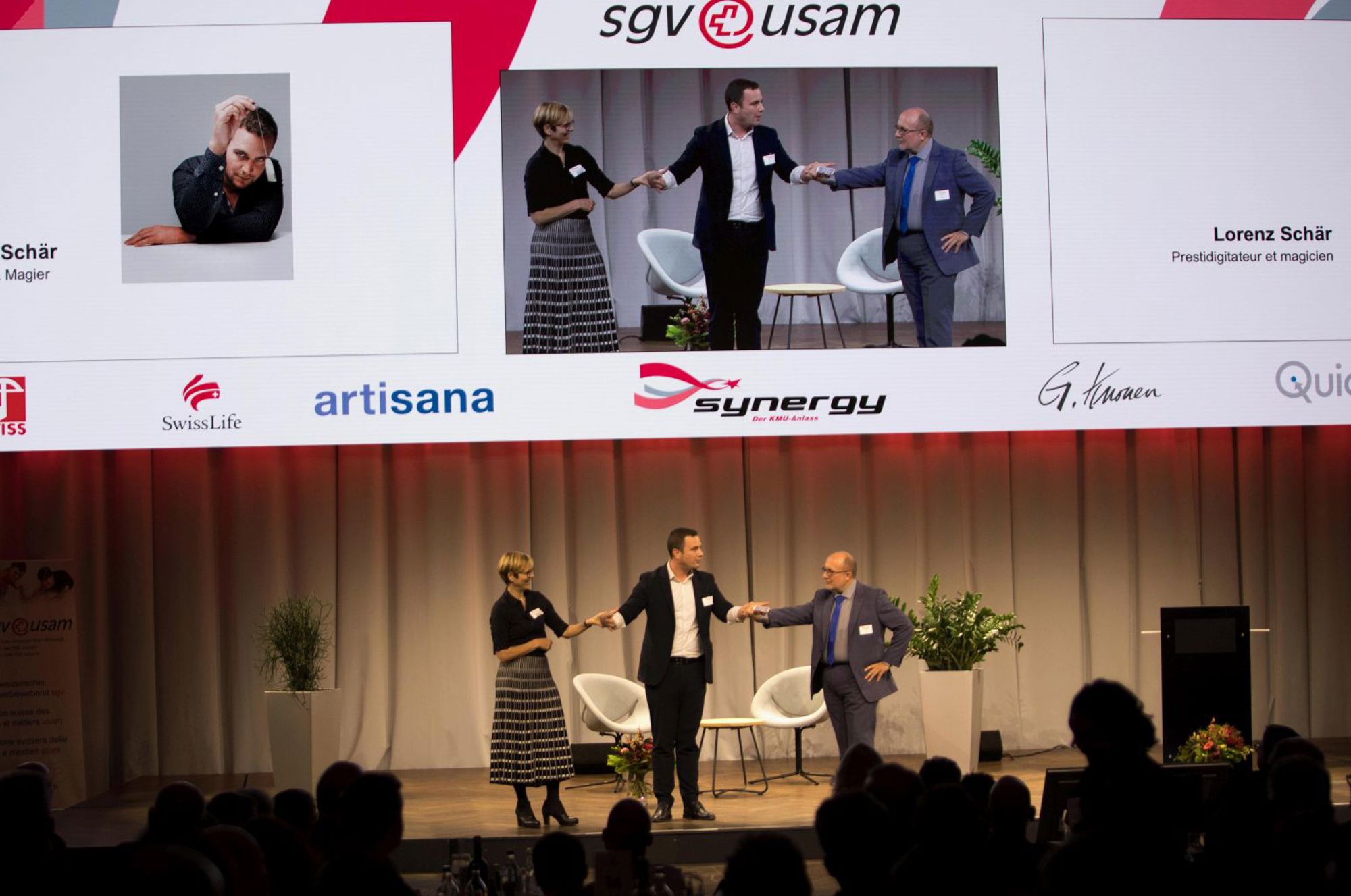 Die synergy 2023 fand am 8. November im Kursaal in Bern statt und setzte sich mit dem Schwerpunkt «Leadership» auseinander. Die Keynote wurde von Alt-Bundesrat Adolph Ogi gehalten. Vorgestellt wurden die KMU Appenzeller Alpenbitter AG sowie die Kuhn-Rikon AG. Der jährlich von der Stiftung Artisana verliehene Gesundheitsförderungspreis ging an die Gamma AG aus Schattdorf im Kanton Uri. Auf dieser Seite finden Sie die komplette Fotogalerie des Anlasses.
